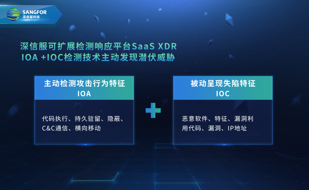 深信服SaaS XDR將IOA與IOC檢測技術(shù)相結(jié)合,實現(xiàn)事中攻擊行為的持續(xù)監(jiān)測與事后追蹤溯源的快速響應(yīng),這也意味著安全建設(shè)思路從被動防御轉(zhuǎn)向主動檢測。